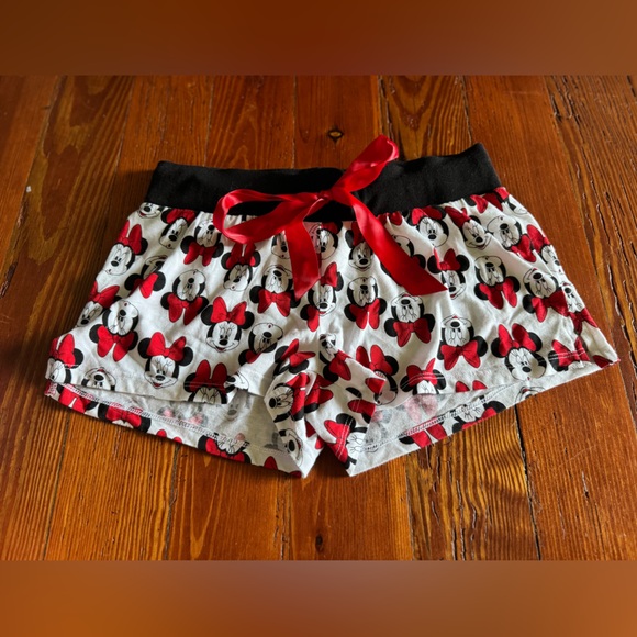 #87 Women’s EUC Disney Minnie Mouse PJ pajama Shorts White, Red, and Black Small