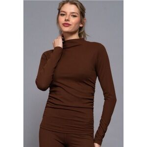 877 • Brown Mock Neck Ruched Long Sleeve High Waist Pocket Pants 2 Piece Set