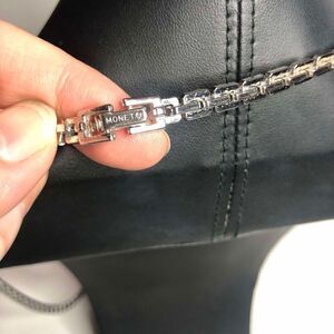 877 Monet silvertone rectangle link station link long 30" necklace