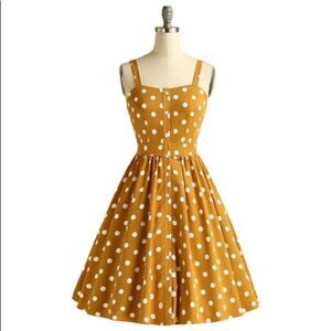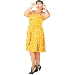 Beautiful mustard yellow polkadot button down dress WITH POCKETS