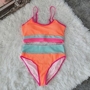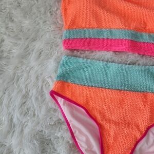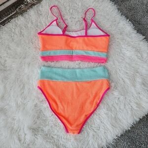 87th Street Boutique Textured Grapefruit Orange Color Block High Waisted Sexy Bikini Set. Size Large. New.