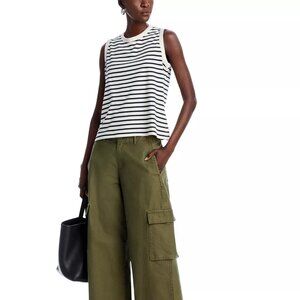 88$ Kule Striped Contrast Trim Crew Neck Tank Top Sleeveless Size XS Ivory Navy