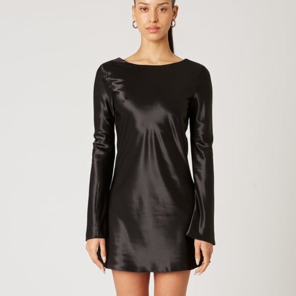 Description: 88$ NIA KIM Satin Open-Back Mini Party Dress Long Sleeves
