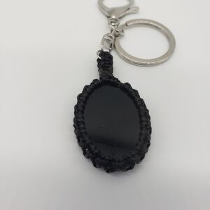883- Black Obsidian Stone Keychain Macrame Handmade NWT