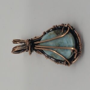 Wire Wrapped Natural Stone Pendant Necklace Handmade NWT