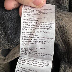 Main part (woven check) 60% wool, 40% polyester; lining: 100% nylon, tafeta; insulation: Primaloft® Silver Eco, 60 gm, 100% recycled; Primaloft® Silver Eco is a technical, synthetic alternative to down that retains warmth without becoming thick, is breathable and naturally water repellent, providing reliable protection even when wet. In addition, it is made from 100% recycled materials