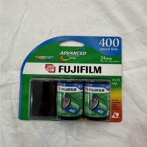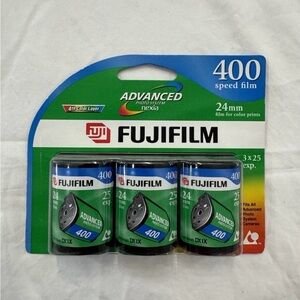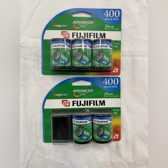 The product is a 3-pack and 2-pack of opened Fujifilm 400 film rolls, with each roll offering 25 exposures of APS 24mm film format. This color film has a film speed of 400 ISO and is part of the Fujicolor series from Fujifilm, a reputable brand known for producing high-quality photographic films. Made in Japan, this film is ideal for film photography enthusiasts looking to capture images with rich colors and fine detail. Unsure of expiration this is for all 5 rolls one pack is completely unopened the other pack has one taken from it total will be 5 rolls 194