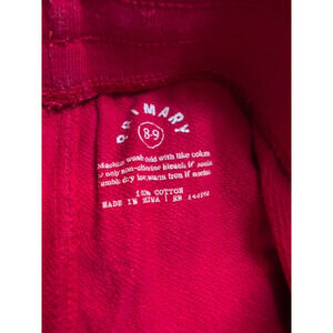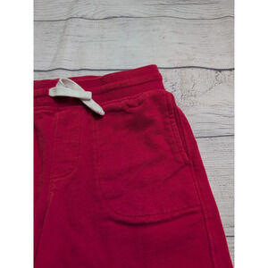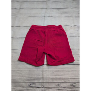 GUC Primary terry shorts. Red. Elastic waistband with drawstring. Pockets at hips. Light wash wear/tiny spot on bum