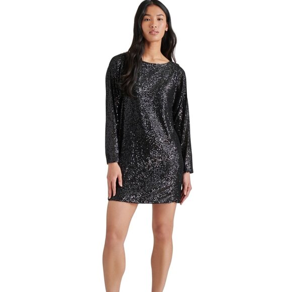 Description: 89$ STEVE MADDEN Ginger Sequin Mini Party Dress Long Sleeves