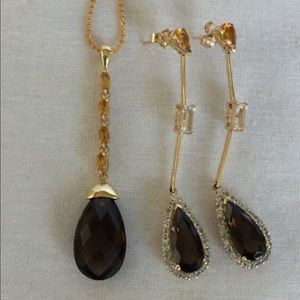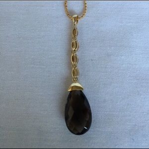 NWOT 14K yellow gold 8.9 ctw dazzling Citrine & smoky quartz pendant, precious stones 0.40ctw genuine citrine and 8 1/2 carat fancy cut smoky topaz, it weight 5.6 grams, the pendant is approx. 12X56mm. It's hallmark 14K.