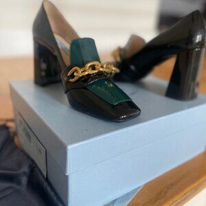 $890 PRADA Gold Chain Statement Loafer Pump New w/Box - S 8,5/9 IT
