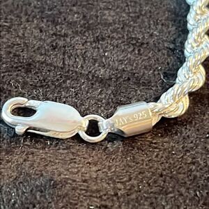 Stylish Solid Rope bracelet with a secure clasp. 8” 925 Sterling Silver Solid Rope Chain Bracelet 4.5mm. Weighs 7g! Perfect for any occasion. Worth a lot more than what I’m giving it away for. New Never worn, comes in the gift box pictured.