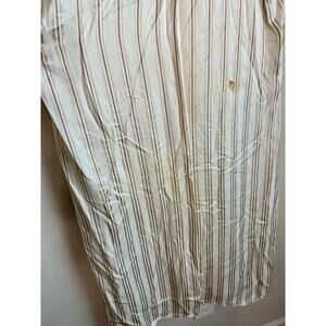 Ivory twill striped viscose (100% Viscose). Hourglass. Short sleeves. Skirt collar neckline. Hidden front button down placket. Front pockets. 49" from shoulder to hemline. Imported.