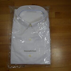 $895 ERMENEGLDO ZEGNA MEN SOLID WHITE DRESS SHIRT CLASSIC FIT DELUXE COTTON XL