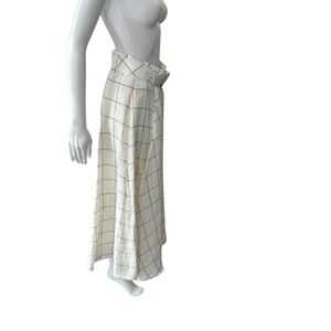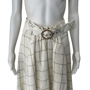 $895 Maison Common Ivory Check Linen Belted Skirt Size 36/US 4