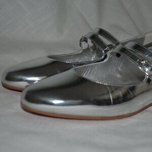 $895 Sz 37.5 7 Christian Louboutin Sweet Jane Silver Patent Mary Jane Flats
