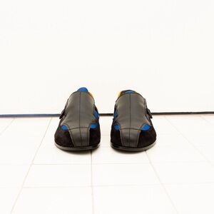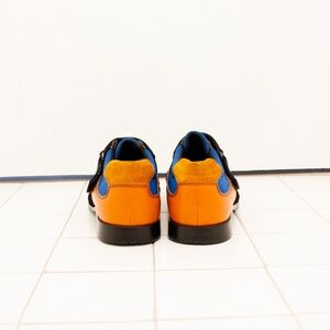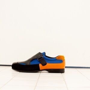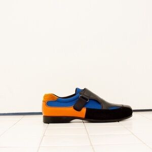 $899 Prada sneakers Mens SZ8.5 Orange Blue Black Leather Suede Mesh Single Monk