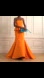 GOWN IS CUT FROM AMBER COLORED MOIRE FAILLE. PEPLUM DETAILING AT THE WAIST AND A TRUMPET-LIKE SILHOUETTE EXHIBIT THE TIMELESS FEMININITY THAT HAS BEEN INHERENT TO THE HOUSE SINCE ITS BEGINNING.