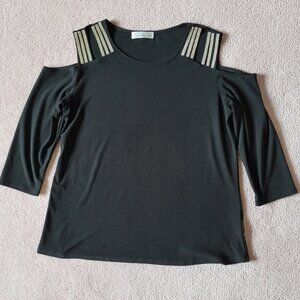 89th + Madison Black Cold Shoulder Top with Bling Three Quater Sleeve Size M