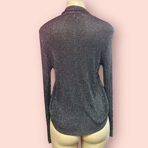 Elegant black cardigan with metallic shimmer. Perfect for layering. Stylish and versatile. INVENTORY 132