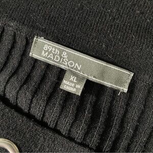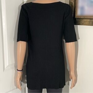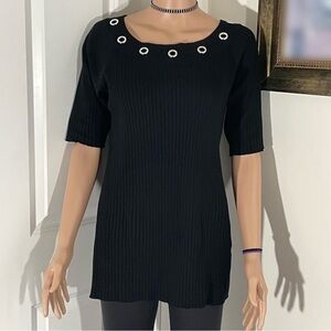 89th & Madison Black Sweater Top With Above Elbow Sleeve w/ Silver Ring Details