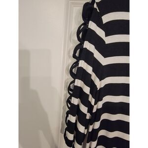 89th & Madison Black and White Striped Top with Cutout Sleeve Detail - Size L