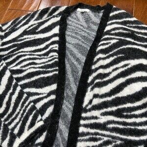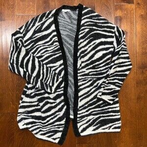 89th + Madison Buttonless Cardigan Zebra Black Striped Plus Women's Size 2XL