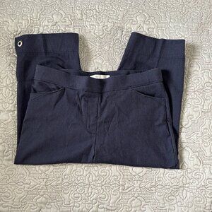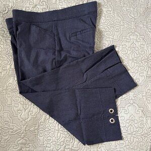 Elastic waistband, front pockets, faux back pockets, stylish eyelets at ankles