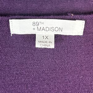 Wrap yourself in the sophisticated charm of the 89th & Madison Cardigan, a perfect addition to your wardrobe for a touch of dark academia flair. This cardigan features a regal purple hue, complemented by eye-catching silver studs, adding an edgy twist to the classic design. Tailored for a plus-size fit in 1X (46-inch chest & 28 inches long), it promises a comfortable experience without compromising on style. Crafted with a blend of rayon and polyester, the knit fabric offers a breathable feel, ideal for transitioning through seasons. Versatile enough for business meetings, casual outings, or travel, this tight-knit sweater boasts a V-neck and long sleeves. The open-front feature and solid pattern ensure it can be paired effortlessly with your favorite outfits, making it a timeless piece for any occasion. We ship packages daily M-F. This item's fabric may attract lint or hair. It ships from a smoke-free, dog-friendly home. While cleaned, some lint or hair may remain.