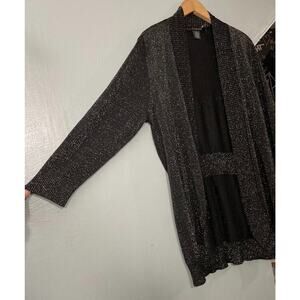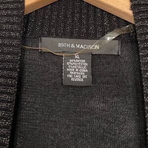 89th & Madison Cardigan Size XL Black Silver Metallic Holiday Sparkle Shimmer