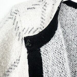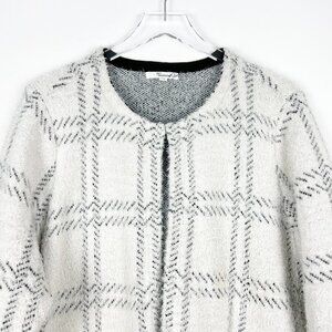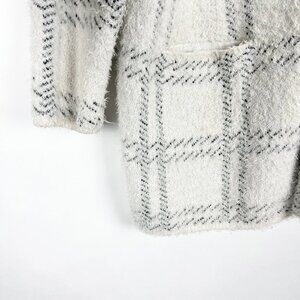 89th & Madison Cardigan Womens 1X White Black Windowpane Plaid Eyelash Knit