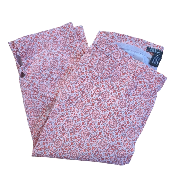 Adorable chic capri in coral in white with comfortable stretch and cute cut out. Versatile and stylish. Bg9