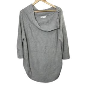89th + Madison Gray Oversized Cowlneck Side Snap Knit Sweater Women's XL