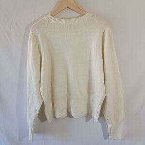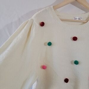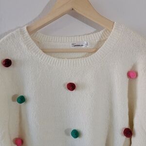 89th + Madison Ivory Pom Pom Pullover Sweater Sz XL Minimalist Cozy Rainbow Soft