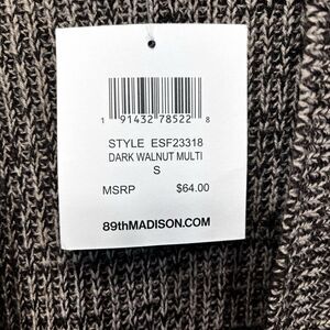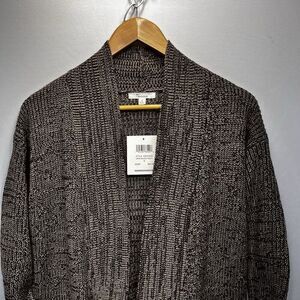 89th & Madison Knit Walnut Brown Long Cardigan Sweater Open Front Zip Pockets S