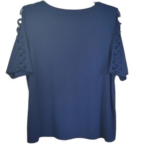 89th + Madison Lattice Sleeve Navy Blue Top Size 1X