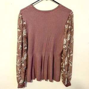 89th + Madison Lavender Peplum Pull On Sweater Bodice Sheer Sleeve Mixed Media