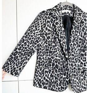 89th + Madison Leopard Print Blazer Jacket Size Medium 3/4 Sleeve Mob Wife