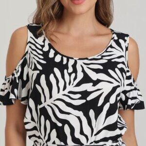 89th & Madison | NEW Women's Black & White Linen Blend Cold Shoulder Blouse - M