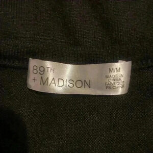 89th + Madison NWT black top with cold shoulders & keyhole opening in front all with silver trim. A very classy top. Women’s size medium. 95 % polyester 5% spandex. Pit to pit 19” length is 25” SFPF HOME
