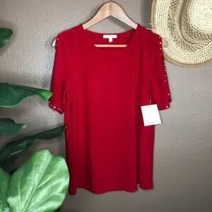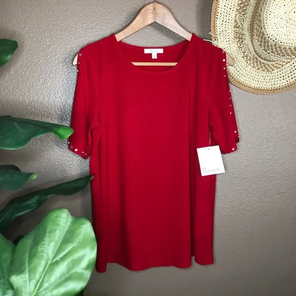89th + Madison Ruby Red Rhinestone Top Size Small. NEW WITH TAGS. Beautiful red with cute rhinestones up the sleeves