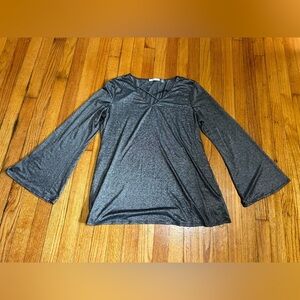 89th + Madison Silver Long Flare Sleeve Blouse Size Large