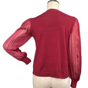 89th + Madison Solid Knit w/Metallic Striped Sleeve Top Sz S Red 184K