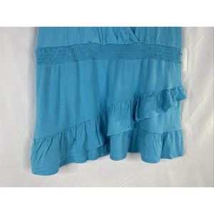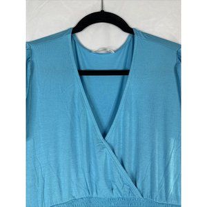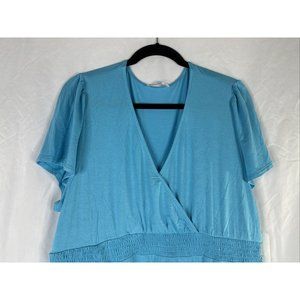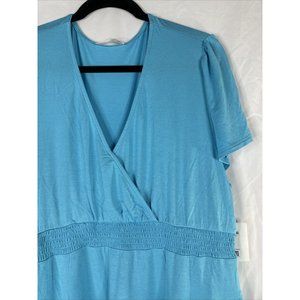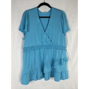 89th Madison Tunic Surplice Top Women Plus Size 1X Blue Short Sleeve Capri New