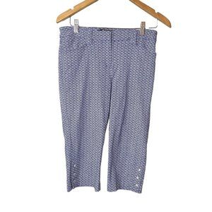 89th & Madison Weave Design Size 6 Pull On Capri Pants Rhinestone Buttons Blue