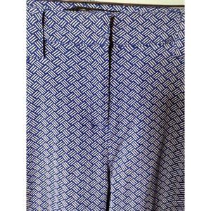 Elevate your wardrobe with these stylish capri pants from 89th & Madison. Featuring a beautiful geometric pattern in a nice shade of blue, these pants are made from a comfortable and stretchy blend of nylon, spandex, and rayon. The pull-on closure and flat front design create a smooth silhouette, while rhinestone accents add a touch of glamour to any casual or business occasion. There are 2 front slash pockets & 2 back faux pockets.