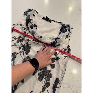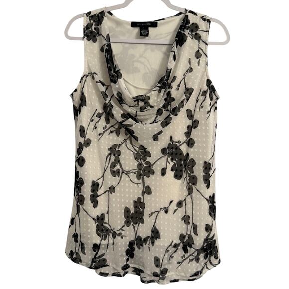 89th & Madison Whimsical Floral Swiss Dot Sheer Lined Cowl Neck Sleeveless Top L