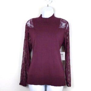 89th & Madison Women's Burgundy turtleneck sweater with lace sleeves M(NWT)