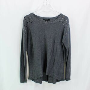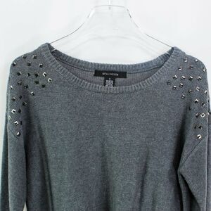 89th & Madison Womens Pullover Sweater Gray Scoop Neck Studded Ribbed Hem