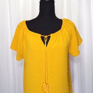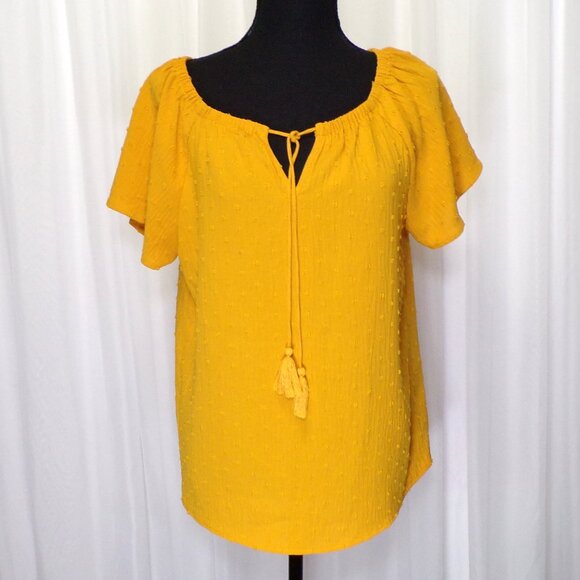 89th & Madison Yellow Gold Swiss Dot Top Womens size Small Tassels Flare Sleeve
